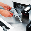 Un corte puede ser ejecutado fácilmente por medio de las barras de activación patentadas EASY-CUT, que garantizan una operación segura de d os-manos.