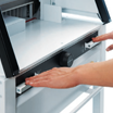 Conveniencia y precisión es lo que obtienes con nuestra guillotina profesional con EASY-CUT, programable con pánel táctil y cortina de seguridad de luz IR en la mesa frontal.